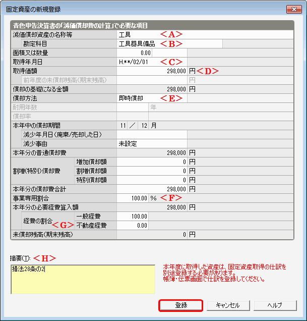 30万円未満の 少額減価償却資産 を登録する方法 個人 弥生会計 サポート情報
