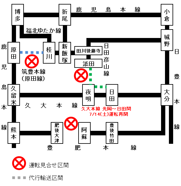 九州加油 現時jr運行情報整理請注意 福岡縣南旅遊指南 By大刀洗町政府 Facebook