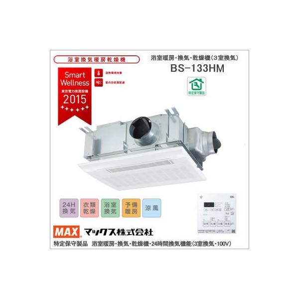 マックス 浴室用設備 浴室暖房換気乾燥機 3室換気 100v Bs 133hm 換気扇 Bs 133hm リモコン付き しあわせ設備next店ドライファン 24時間換気機能