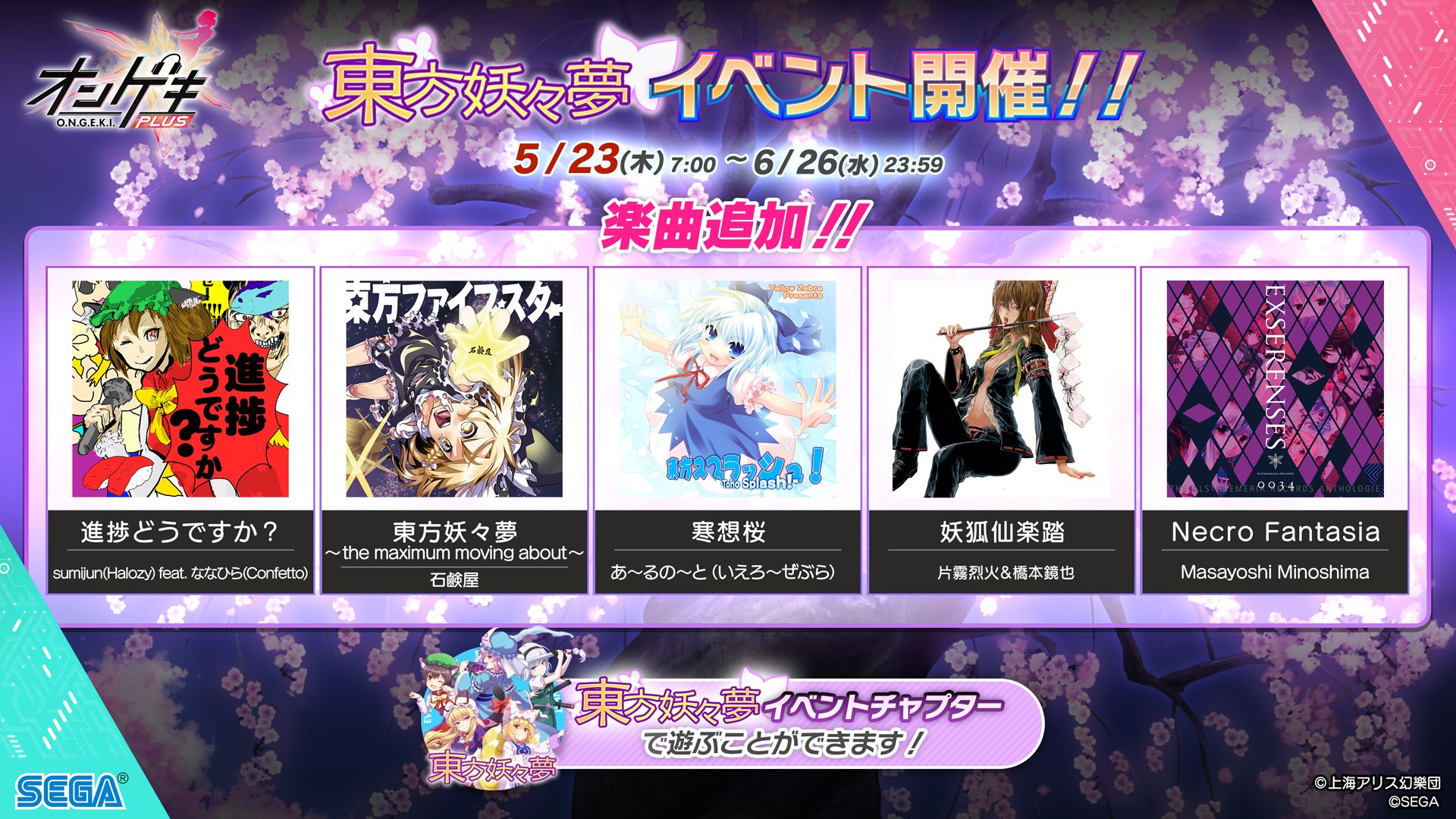 オンゲキ 05 23追加関連 イベントミッション 東方妖々夢コラボ 音ゲーチェッカー 仮
