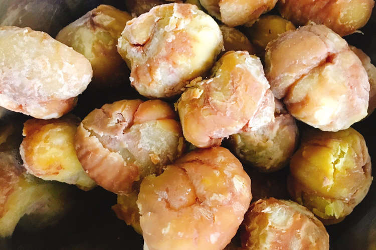 圧力鍋を使った栗の茹で方と皮むきの簡単な方法 蒸し栗風のホクホク食感 やまでら くみこ のレシピ